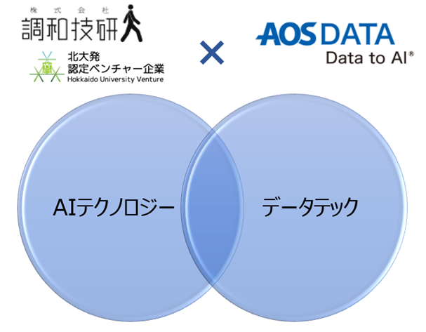 そこで、これまでに多くのAI産業実装プロジェクト実績を積み上げてきた北大発認定ベンチャー企業である調和技研と、データテック技術を基盤としたAIライフサイクルにおけるプラットフォームやサービスを提供してきたAOSデータ社が提携をすることで、新たなAIプロジェクトの価値を創出するAI産業実装ソリューションを展開することとなりました。