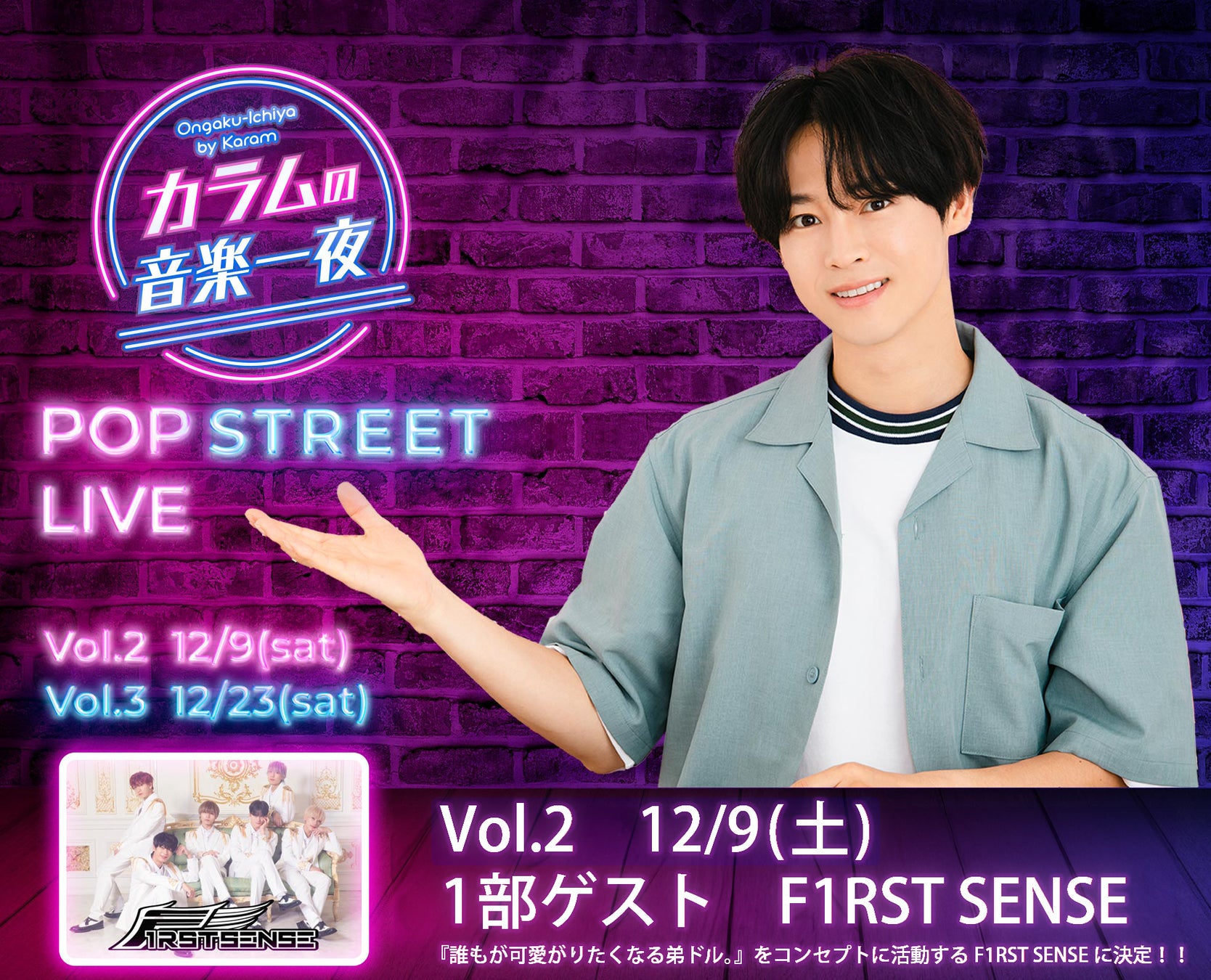 カラムがパーソナリティーを務める文化放送『カラムの音楽一夜』の音楽イベント【POP STREET LIVE】12/9(土)に開催されるVol.2の1部のゲストが、F1RST SENSEに決定しました!