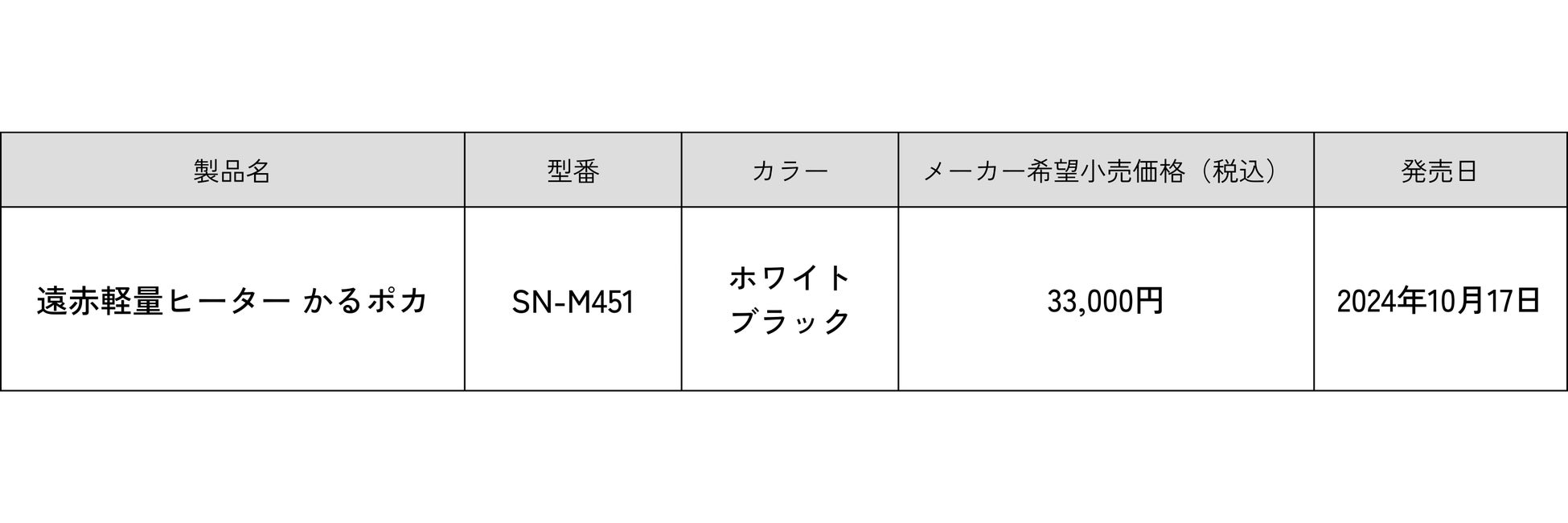 シロカ株式会社(東京都・千代田区)は、遠赤外線と輻射熱のWの熱効果で身体もお部屋もあたためる「遠赤軽量ヒーター かるポカ」に、より足元のあたために特化したモデルを追加し、一部販路限定で2024年10月17日に発売します。
