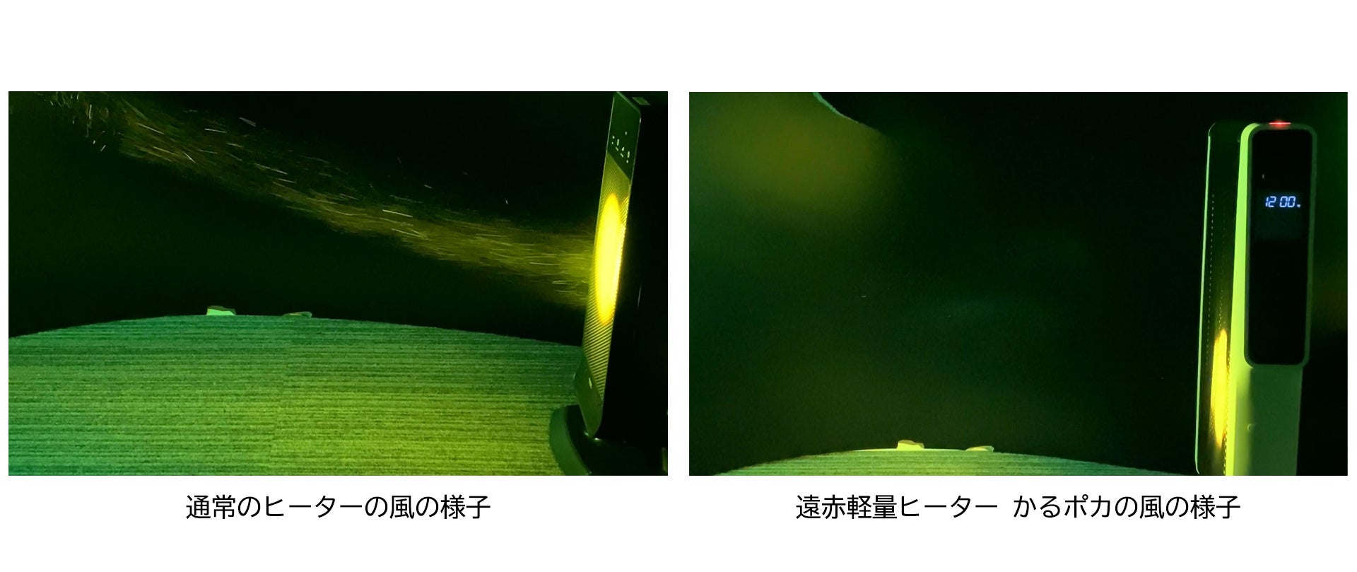※温風を出すエアコンやファンヒーターと異なり、遠赤外線効果で身体を直接すばやくあたため、輻射熱でお部屋をじんわりとあたためます。そのため、運転開始後すぐにお部屋全体はあたたまりません。