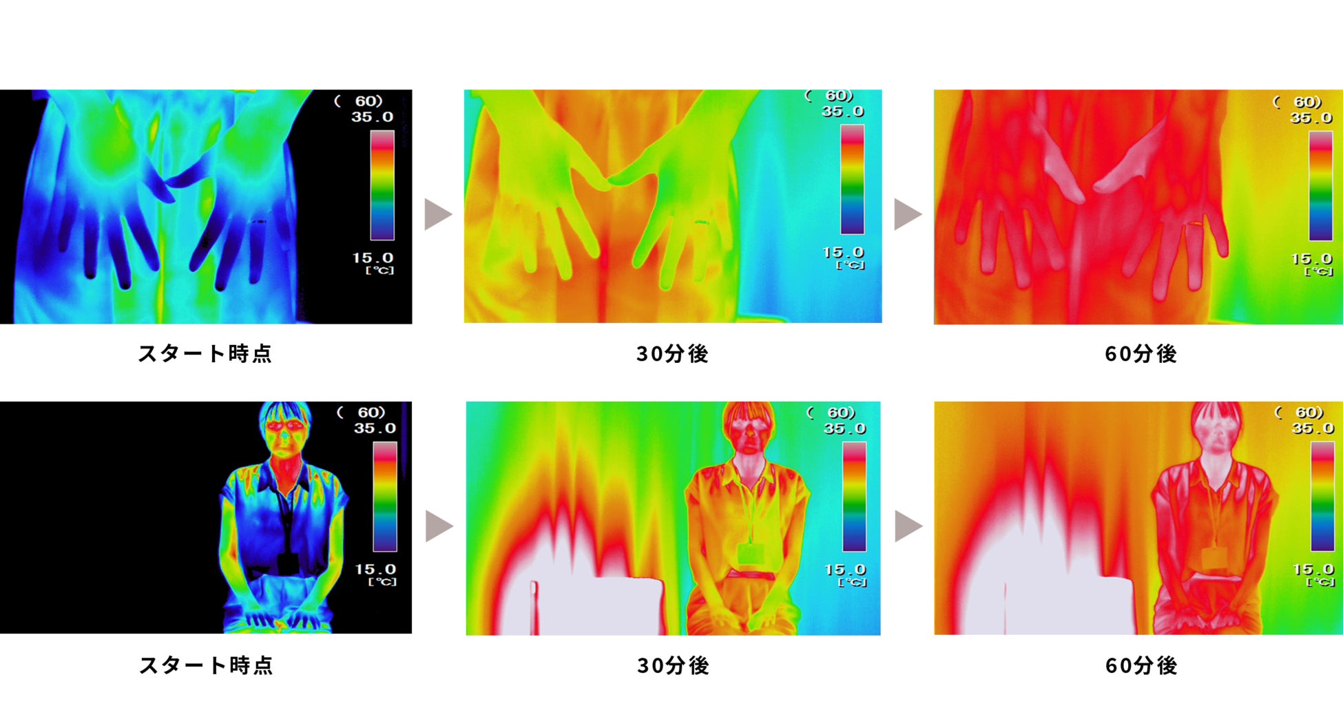 遠赤外線は、一度あたたまると冷めにくいのも特長。ヒーターを停止してもあたたかさが長続きします。