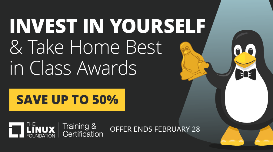最高のブートキャンプで自分に投資 : Linux Foundation Training & Certification バンドルなど50%割引に ー 3月1日 8:59AM (日本時間) まで