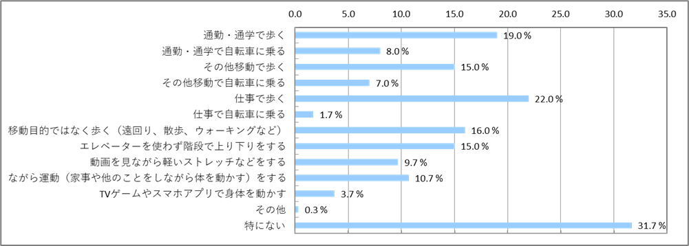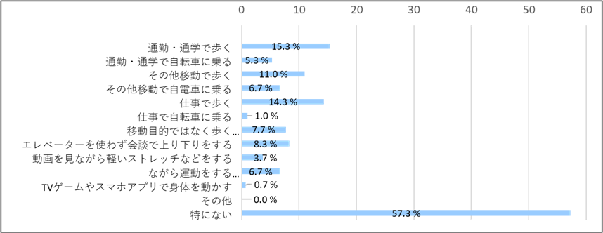 ※1)「1日あたり合計30分以上」は、複数選択肢(「通勤で歩く」「動画を見ながらストレッチする」など)の合算時間。