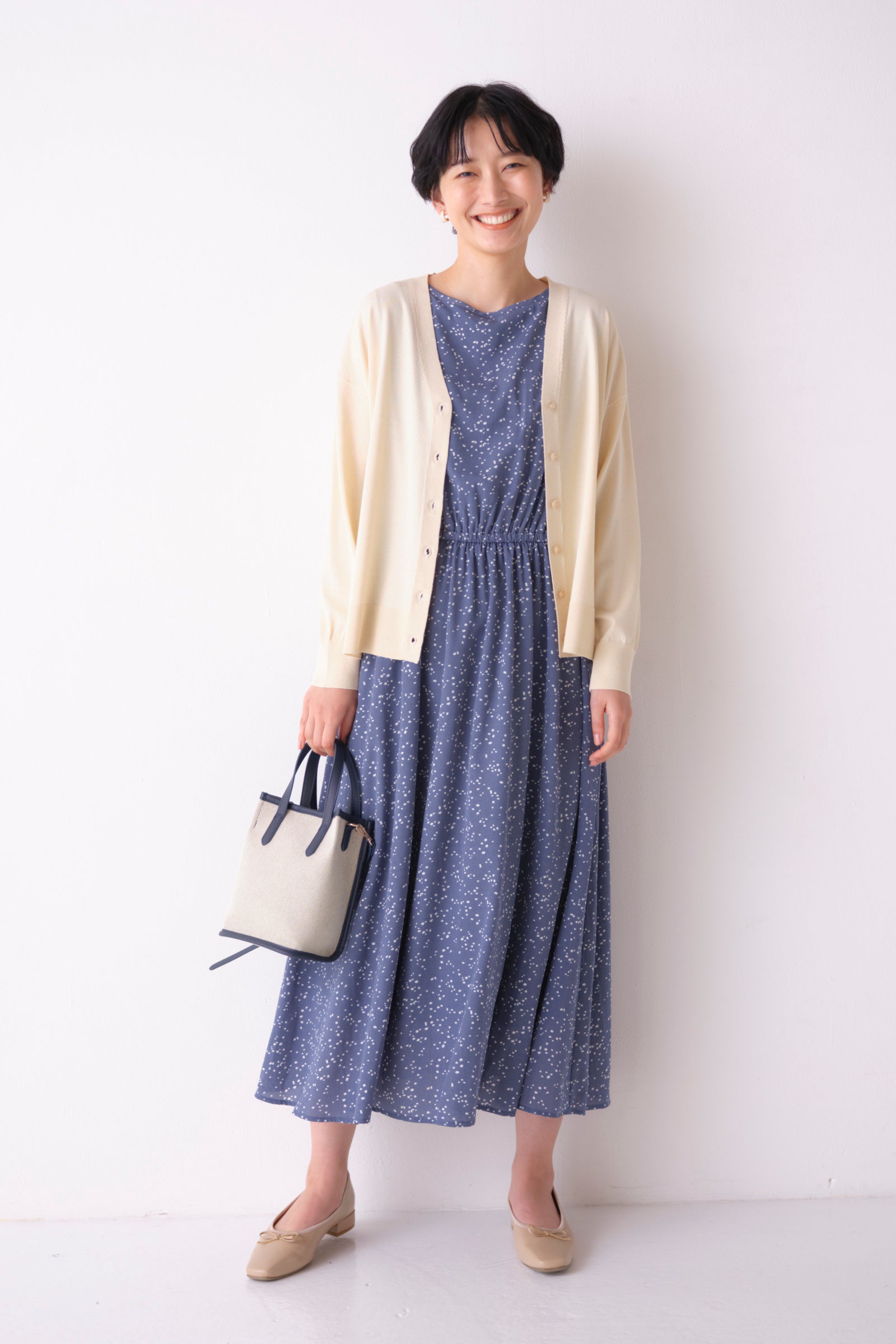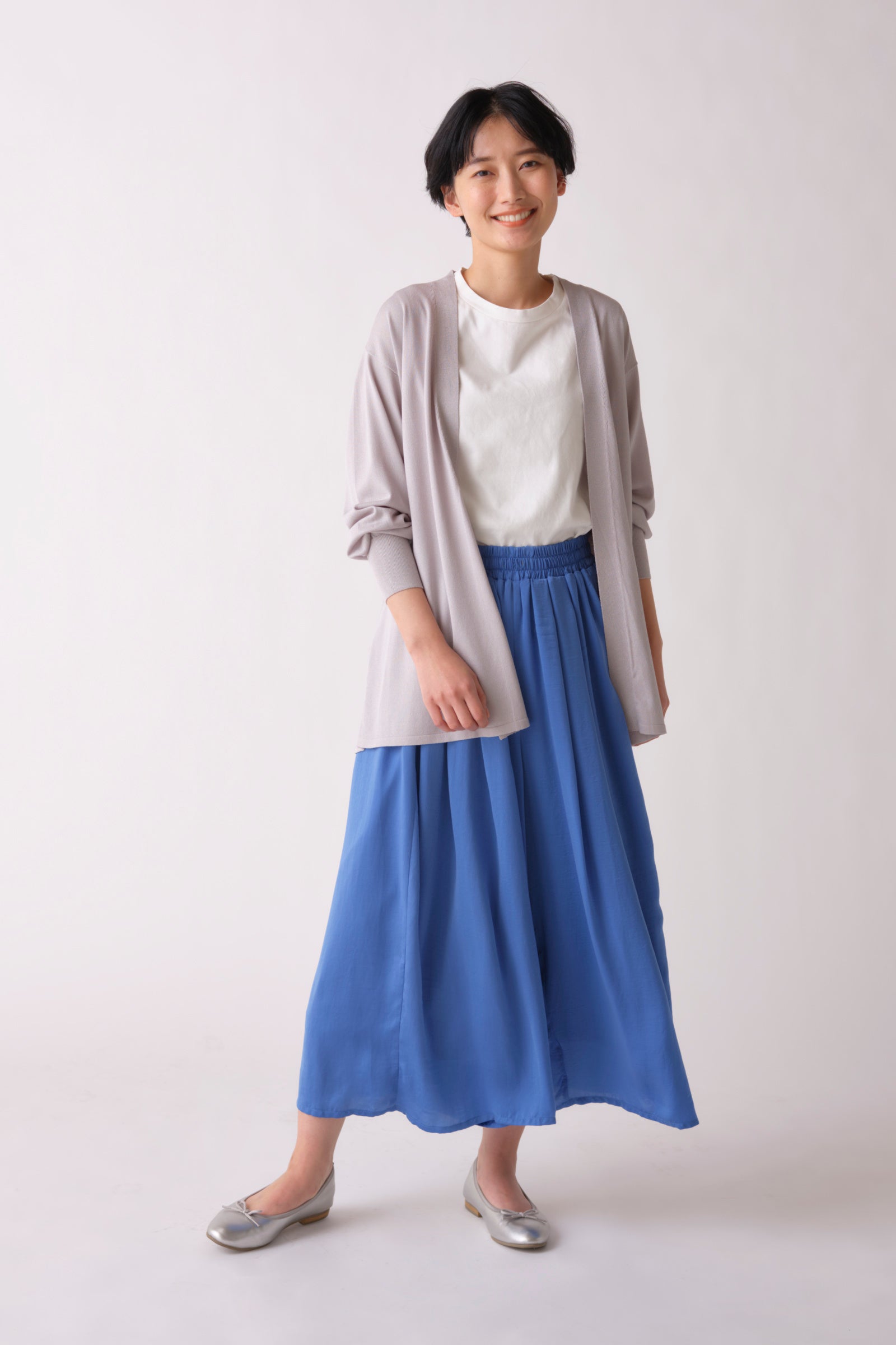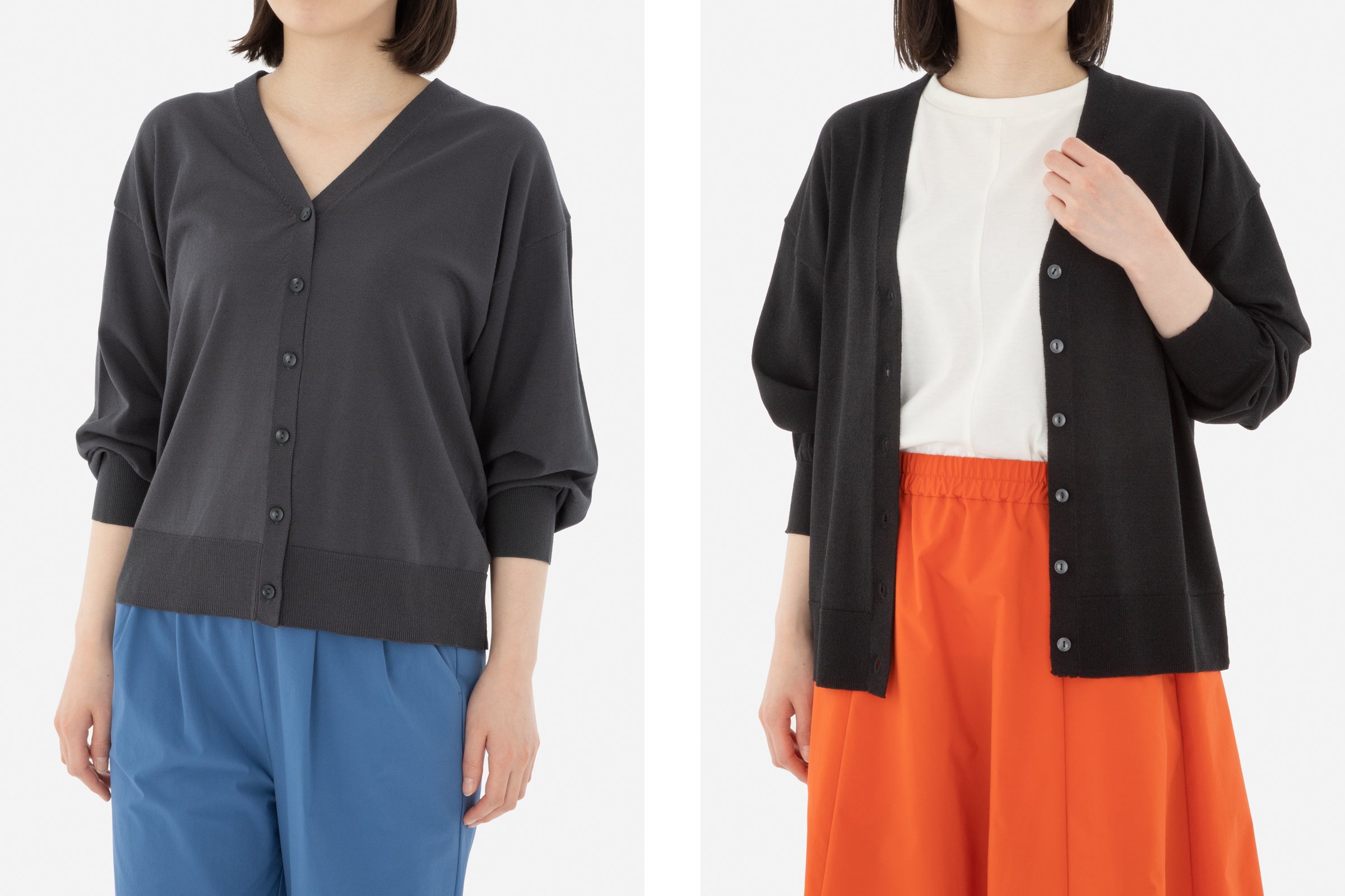 さらりとした肌ざわりが心地よい、接触冷感糸を使用した洗えるニットカーディガン。ゆったりとしたアームホールでワンピースやトップスとの重ね着もしやすく、冷房対策にもおすすめです。自宅で洗えるイージーケアです。