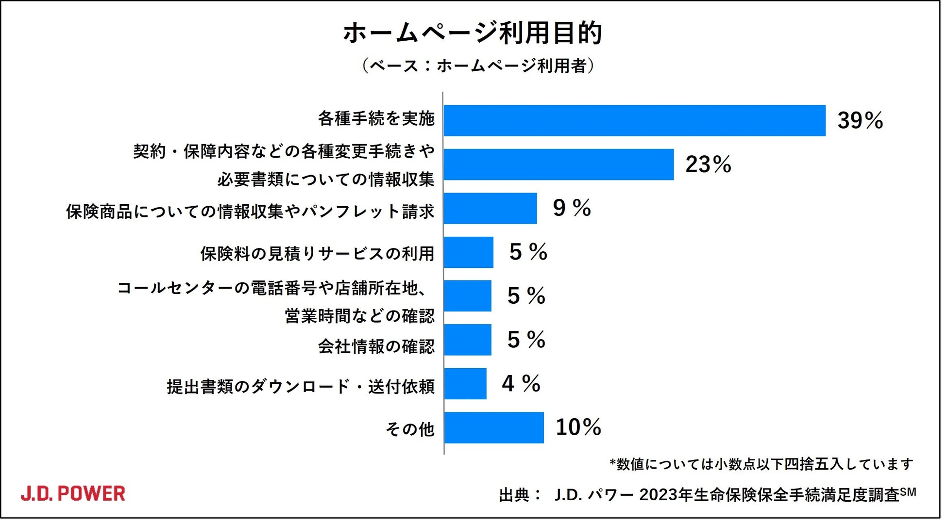 利用の目的としては、「各種手続きを実施」が39%、「契約・保障内容などの各種変更手続きや必要書類についての情報収集」が23%と、2022年から大きな変化は見られなかった。