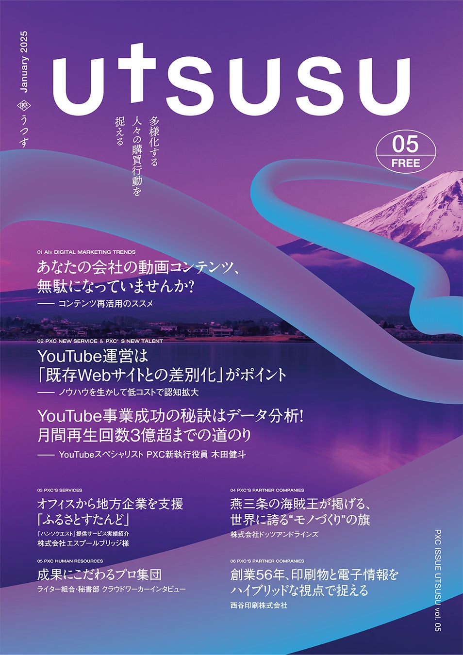 Sales Promotion DX CompanyのPXC株式会社(https://pxc.co.jp )は、自社が提供するサービスや業界のトレンド情報、その他自社のプロモーション実績などを掲載した「UTSUSU(うつす)vol.5」を1月24日に発刊しました。