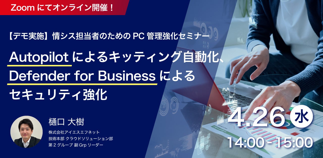 4/26開催_【デモ実施】情シス担当者のためのPC管理強化セミナー~Autopilotによるキッティング自動化、Defender for Businessによるセキュリティ強化~