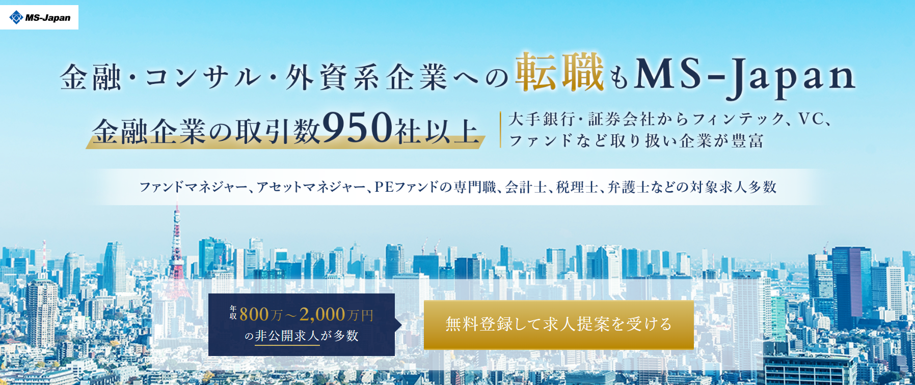 本サービスは、管理部門と会計士・税理士・弁護士等の士業に特化し、創業30年以上にわたり転職のご支援を行ってきた老舗エージェントであるMS-Japanが、金融業界への転職支援するためにアドバイザー体制を整え、新たにローンチした転職サービスです。