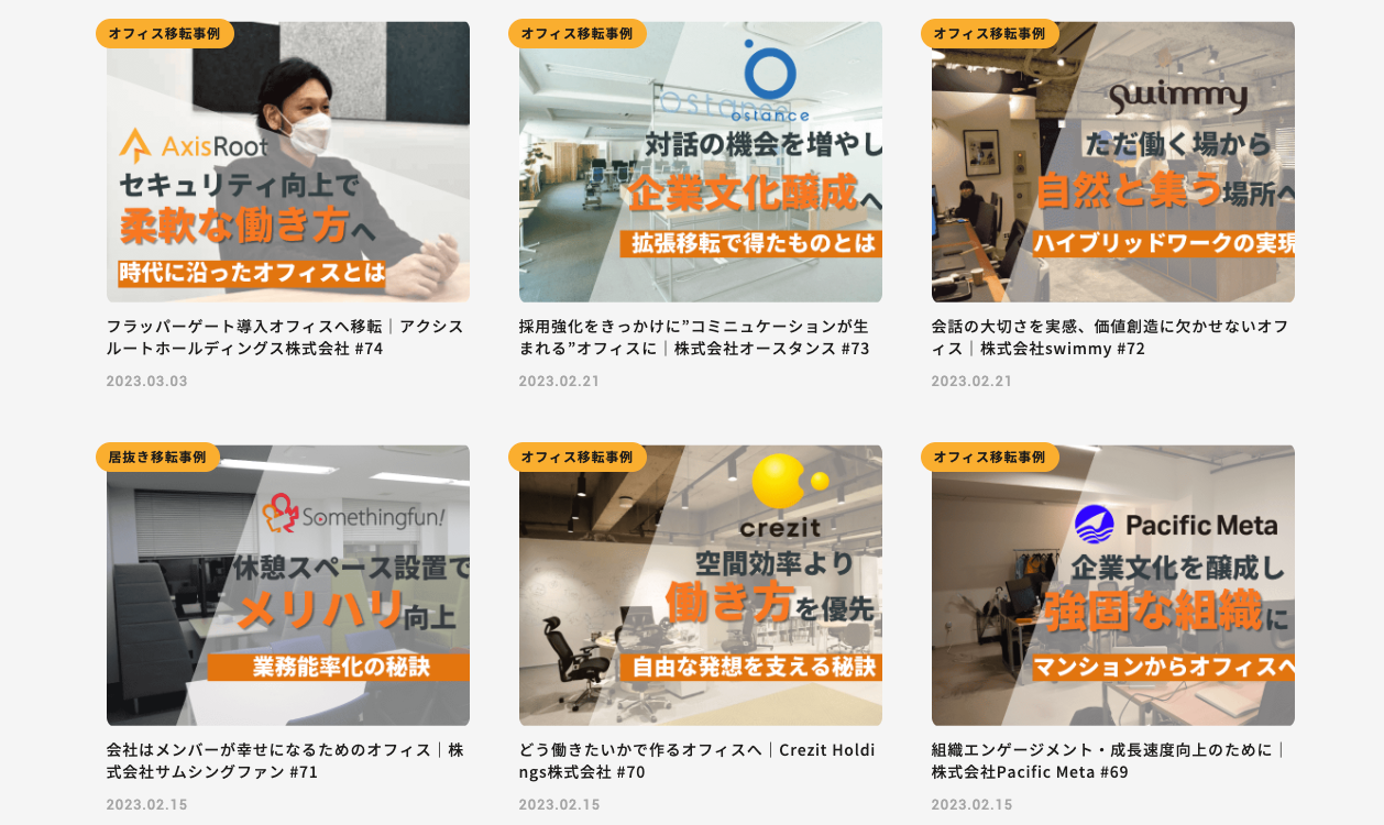さらに、実際に居抜き移転の仲介を行ったスタートアップ・ベンチャー企業の事例を紹介するなど居抜き移転に関わるお役立ちコンテンツも多数展開しています。