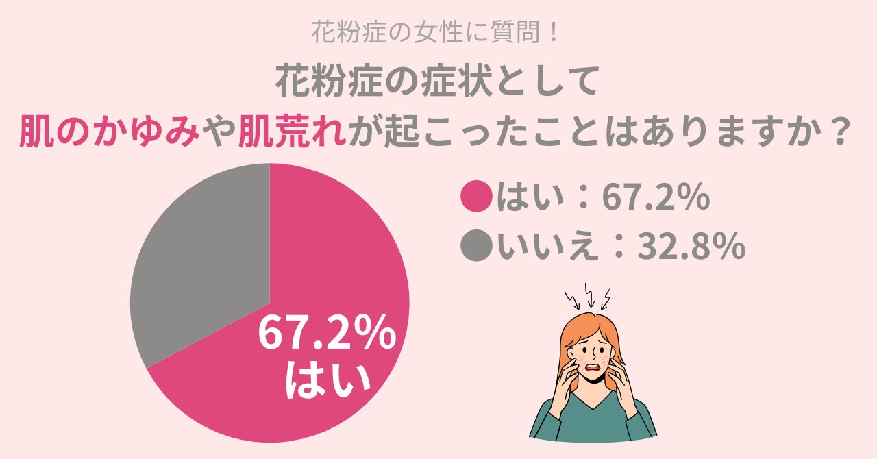 他にも、花粉の影響で、肌のかゆみや肌荒れが起こってしまうことがあります。