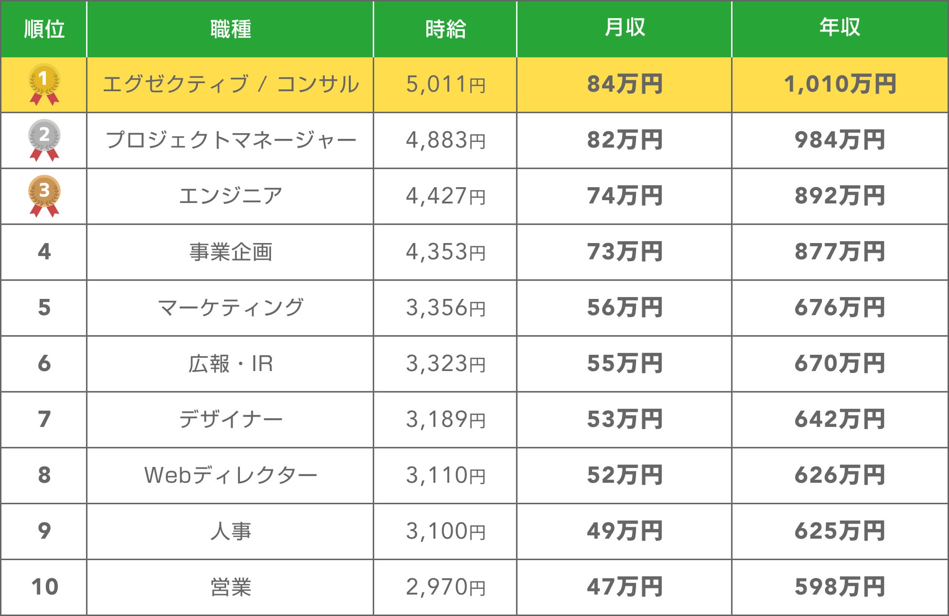 平均年収1,010万円(職種別年収ランキングトップ10中、1位)