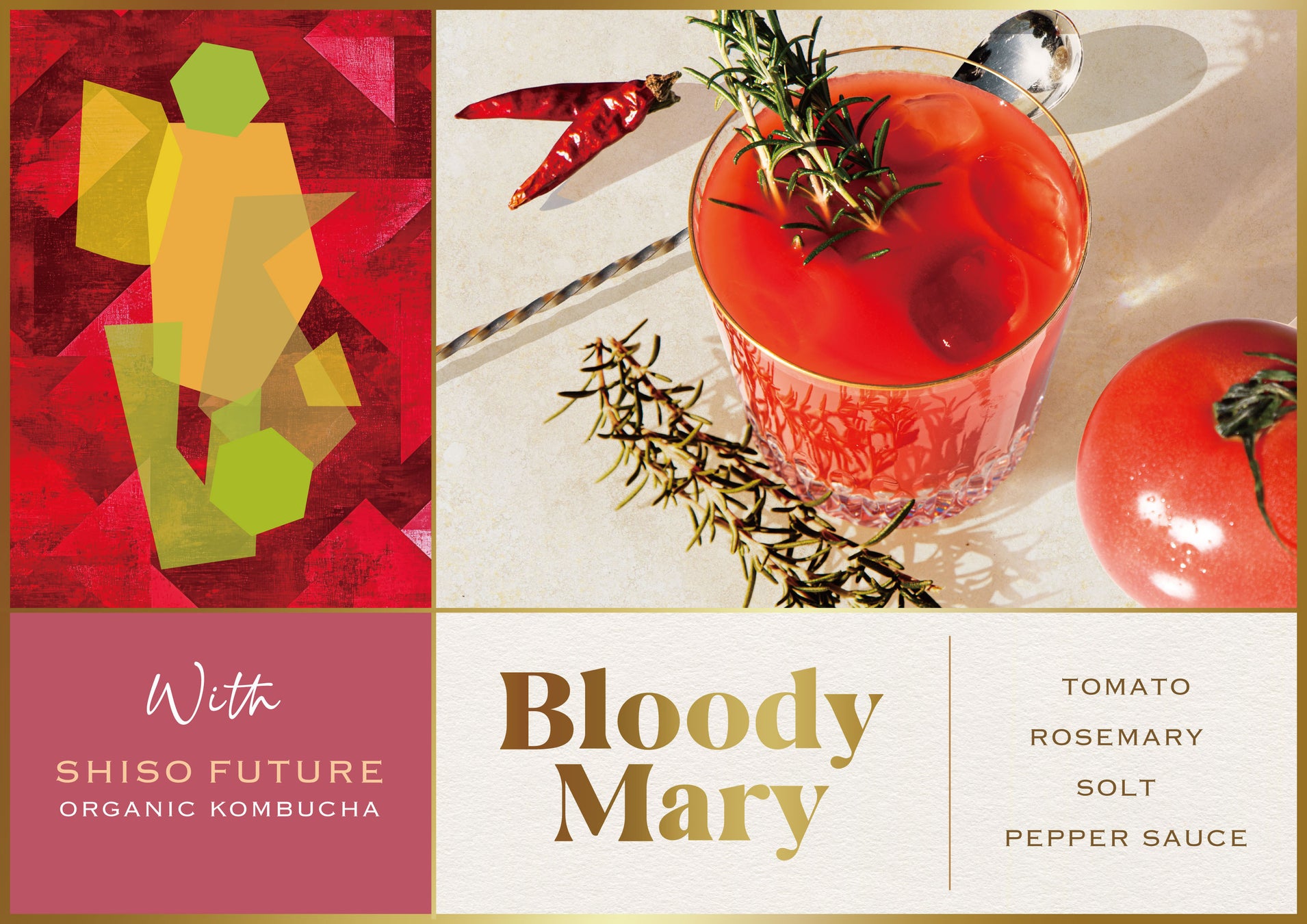 華やかな香りが印象的な赤紫蘇のコンブチャにトマトジュースを加えることで旨みを足し、アクセントで辛味を加えることで、冷製スープのような飲みごたえのある1杯に仕上げました。軽く炙ったローズマリーでほんのりとスモーキーをプラスした、少し大人な味わいです。
