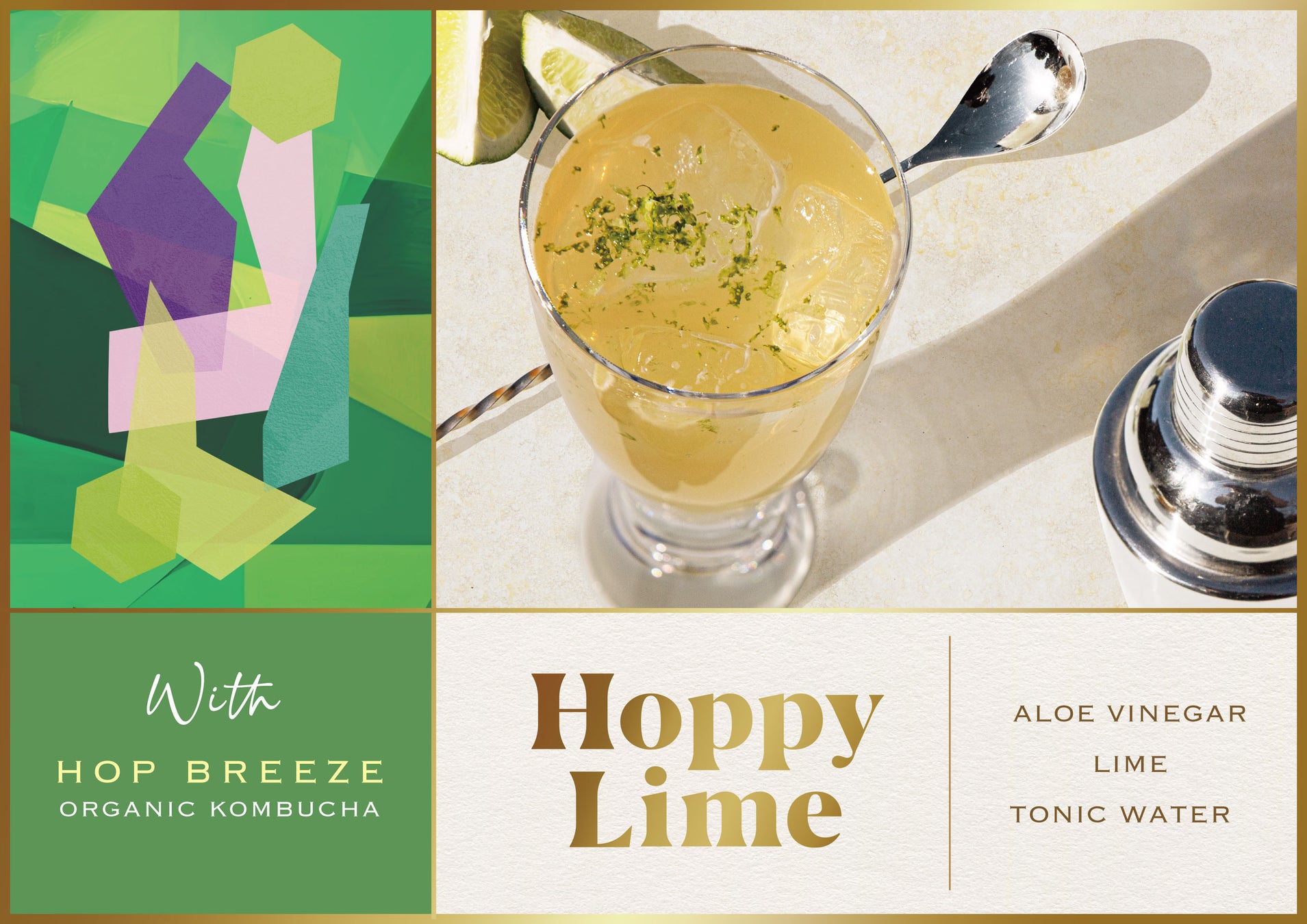 控えめな苦味と、ホップの華やかな香りがまるでフルーティなクラフトビールを彷彿させるホップブリーズと、アロエビネガーが相性抜群の一杯。アクセントにキリッと爽やかなライムとエルダーフラワートニックをかけあわせ、さらに複雑さを生み出しました。IPAのようにクリーンな苦味が心地よく体を駆け抜けます。