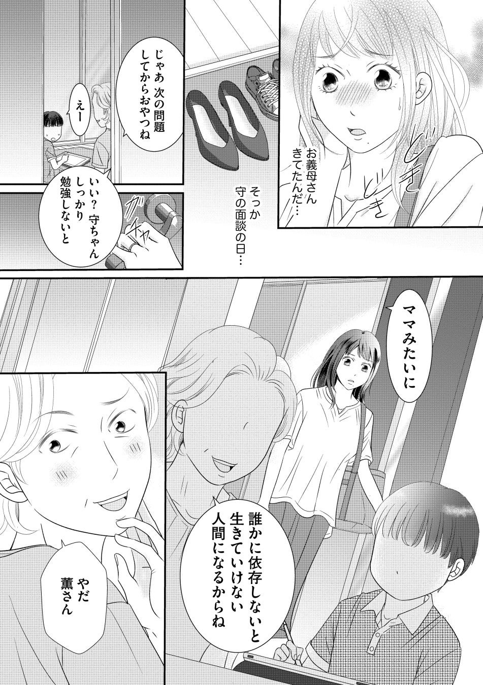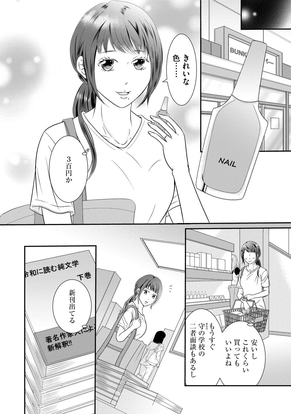 高槻薫は夫・誠司の強い希望で専業主婦。小学生の息子・守の教育資金のため、質素倹約に努めていた。たかがひとつ300円のマニキュアを買うのを躊躇うほどに…。