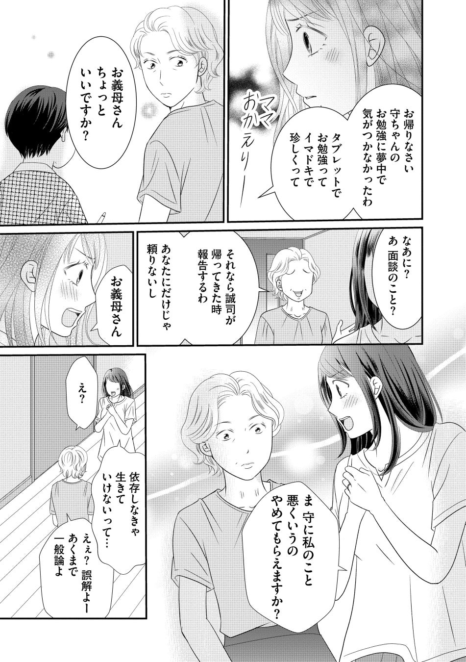 勇気を出して姑に反論するものの、そのせいで楽しみだった家族3人水入らずの守の誕生日パーティーを姑に妨害されてしまう。