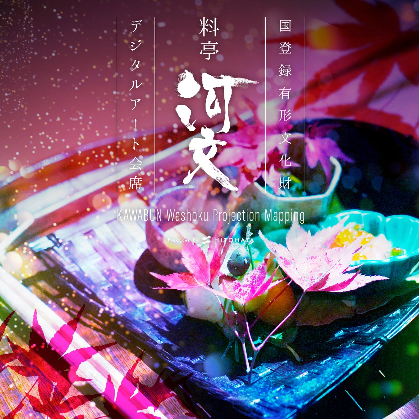 400年の歴史を誇る名古屋最古の料亭・河文で名古屋最高峰の和食会席料理とメニューに合わせて料理の皿や卓へのプロジェクションマッピングを投影。デジタルアートを融合させた期間限定の特別ディナープログラム。