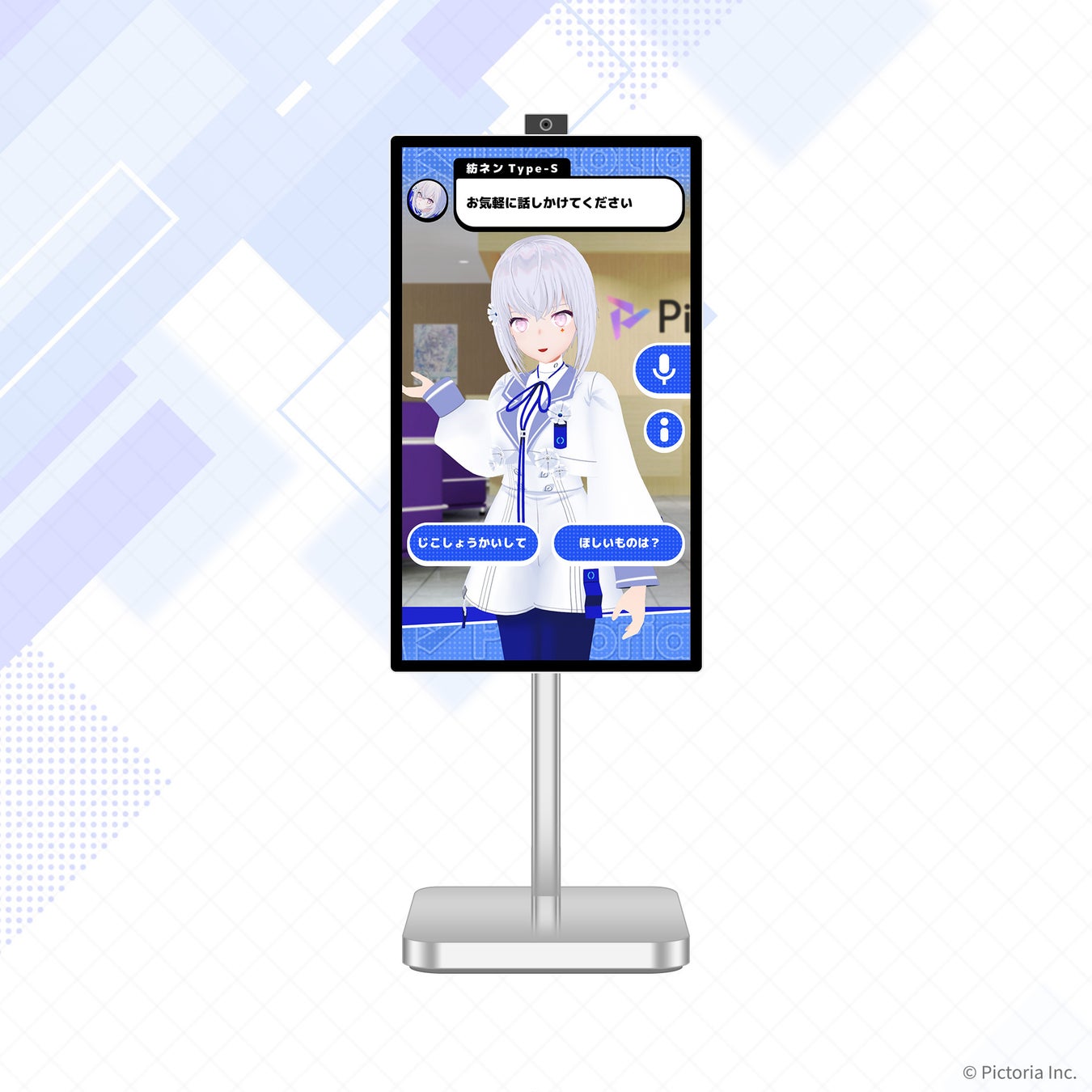 今回の出展ではサイネージ型だけではなく、PC型のサービスや、Pictoria所属のAI VTuber「紡ネン」「紡ネン Type-S」の等身大パネルとおしゃべりできる「おしゃべり等身大Picto STAND」も設置予定です。
