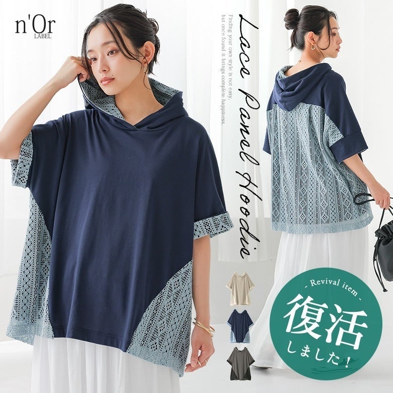 周りと一歩差をつけるなら、異なる表情を組み合わせた「異素材ミックス」が鍵。幾何学柄のレース切り替えや、ほんのり透ける袖シアー、裾から覗く布帛デザインなど、一枚でレイヤード風の奥行きが生まれます。カジュアルな中にもモードで上品なニュアンスが漂い、手抜き感ゼロの装いに。質感のコントラストで、夏のスタイルを鮮やかに更新して。