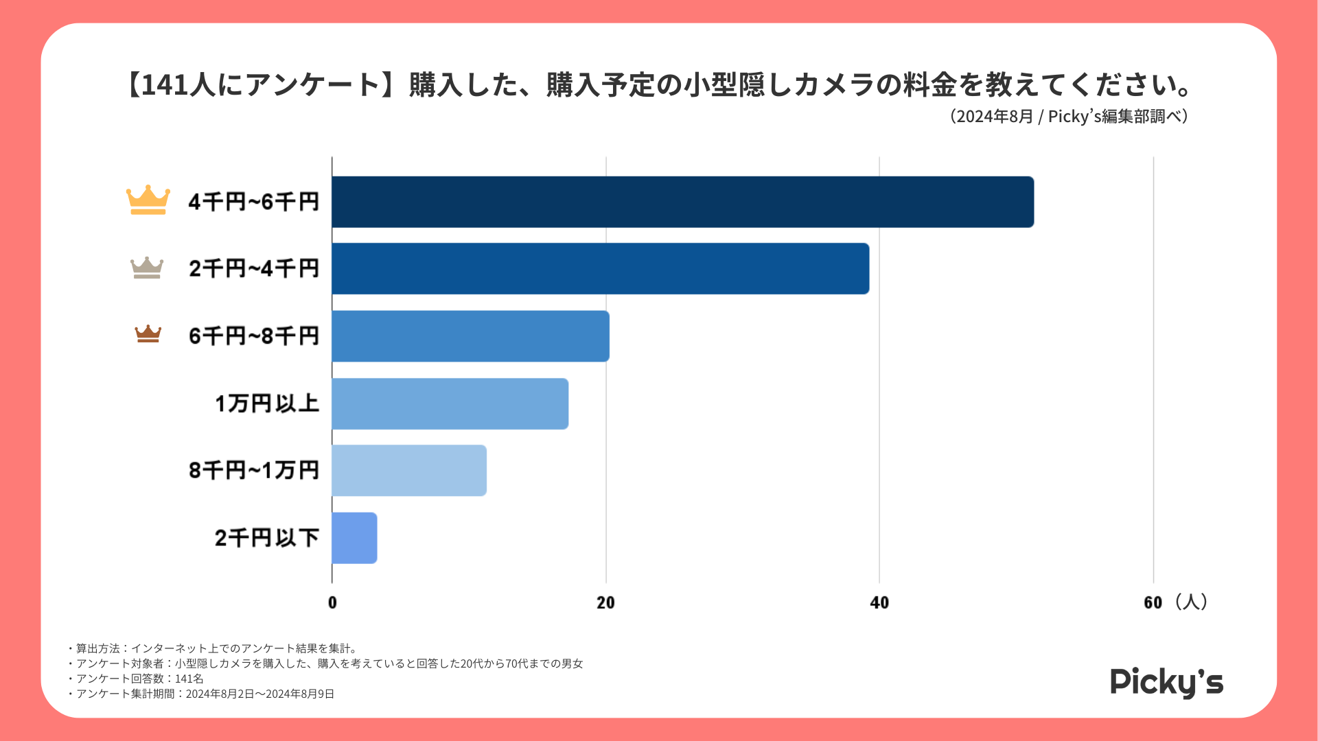 4割近くの方が4千円~6千円の小型隠しカメラを選んでいることが分かります。