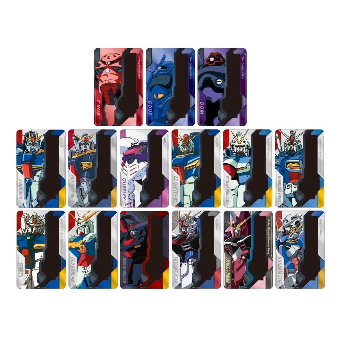 ・種類数 :全15種(「シャア専用ズゴック」、「グフ」、「ドム」、「Zガンダム」、「ガンダムMk-II」、「キュベレイ」、「ZZガンダム」、「ヴィクトリーガンダム」、「ガンダム試作1号機」、「ステイメン」、「ゴッドガンダム」、「マスターガンダム」、「フリーダムガンダム」、「ジャスティスガンダム」、「ガンダムエクシア」)