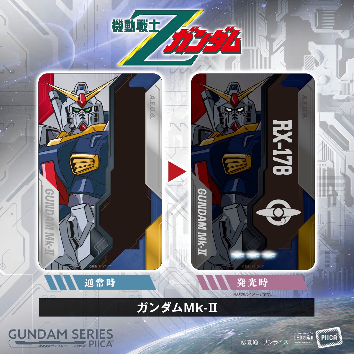 本商品は、アニメ『ガンダムシリーズ』のPIICA 第三弾企画で、ICカードに重ねるだけでピッと光る「PIICA(ピーカ)Ⓡ」と「クリアパスケース」がセットになった「PIICA+クリアパスケース」です。改札口、コンビニ、自動販売機、会社など、ICカードケースと一緒にセットしてタッチすると電波をキャッチして発光するデザインを楽しむことができます。