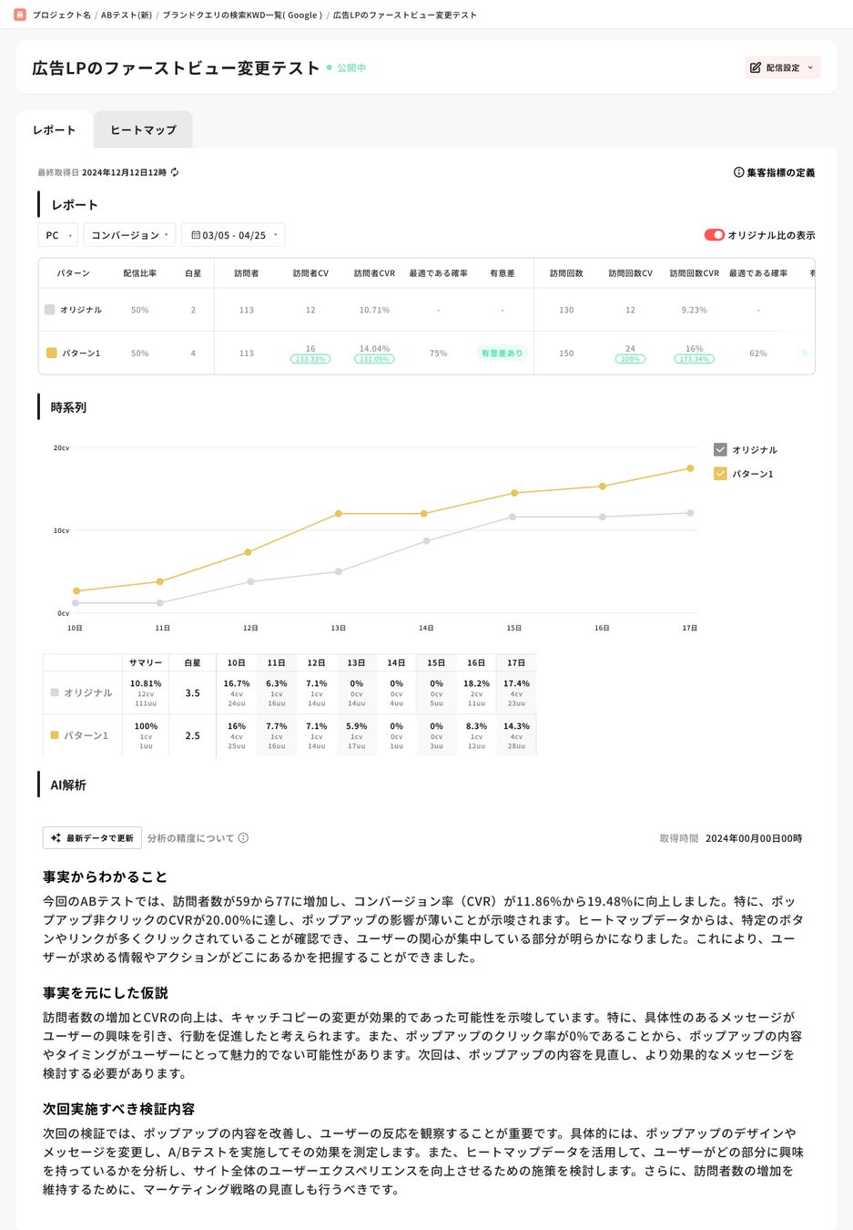 今回のアップデートではその中でも人気のABテスト機能のレポートを更に改善したものとなります。
