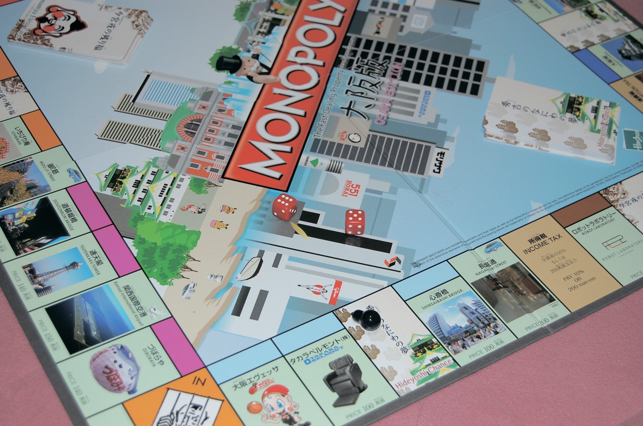 世界には「ご当地モノポリー」が数多く存在し、日本で本格的な都道府県版モノポリーとしてはじめて登場したのは、「秋田県版モノポリー」。2番目に作られたのがこの「大阪版モノポリー」です。
