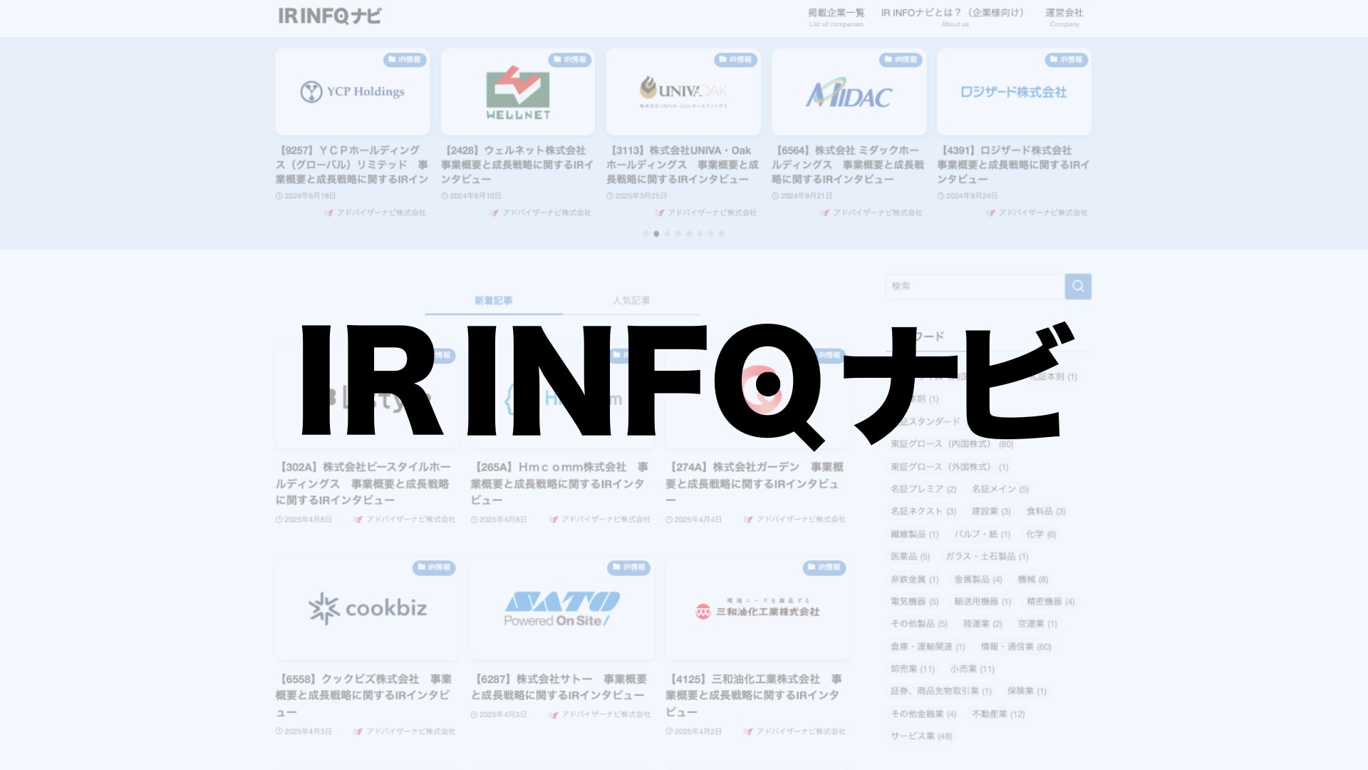 このたび、弊社が運営する投資家情報メディア「IR INFOナビ」のインタビュー記事が200本を突破いたしました。「IR INFOナビ」は、アドバイザーナビ株式会社が運営する投資家向けのメディアです。上場企業の経営者インタビューを通じて企業の事業概要や成長戦略などを発信し、個人投資家を中心に投資家の皆様が企業の情報を収集できるプラットフォームを目指しています。対談取材では、創業のストーリー・事業の特徴や強み・中長期的な成長戦略を、代表者様に投資家目線で語っていただいております。