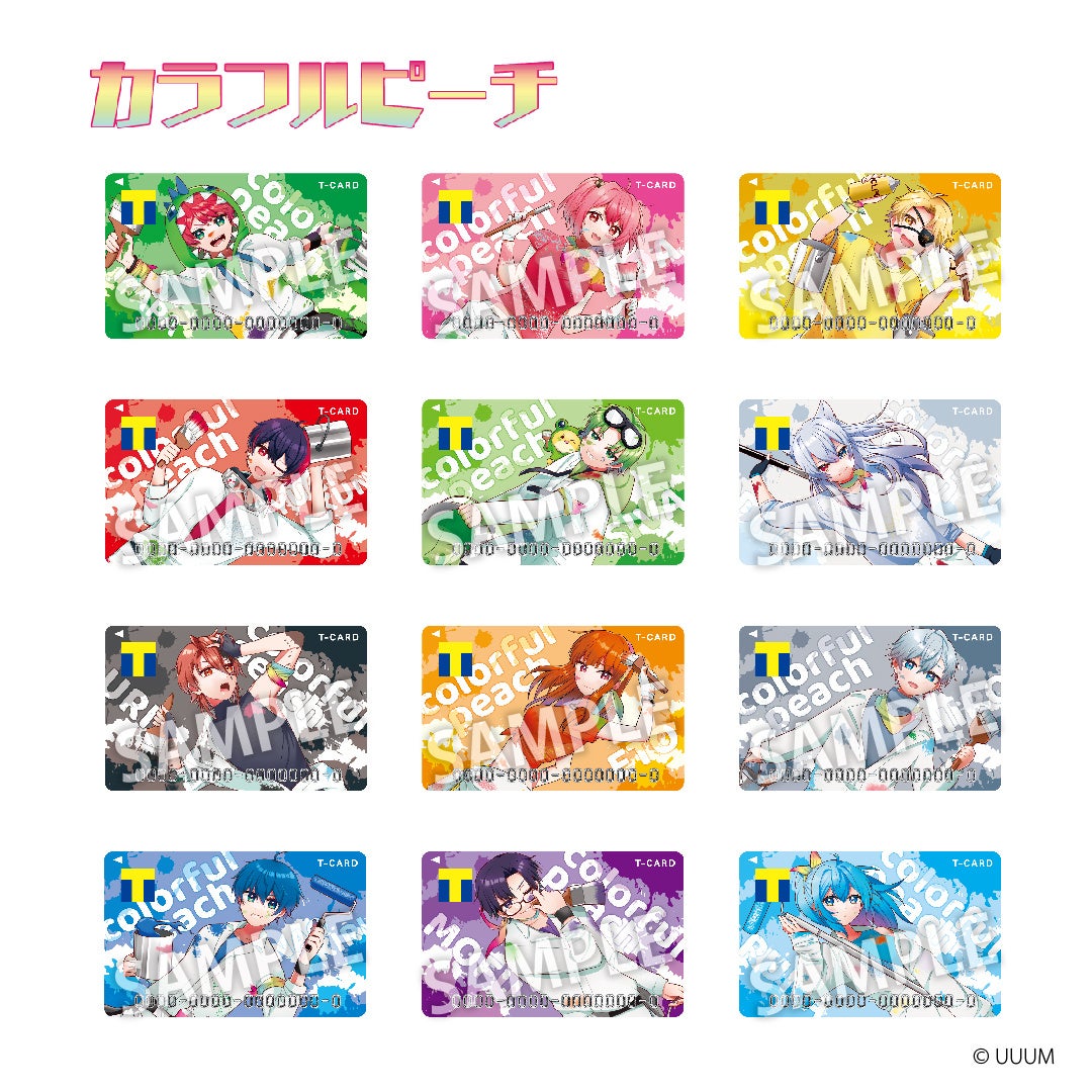 この度の「Tカード(カラフルピーチ)」は、完全描き下ろしイラストで、それぞれのクリエイターカラーを配したメンバー一人ずつのデザインです。じゃぱぱ、のあ、たっつん、ゆあんくん、シヴァ、どぬく、うり、えと、ヒロ、なおきり、もふ、るな、の全12種。個性豊かでカラフルなからぴちの世界を表現した特別な一枚です!