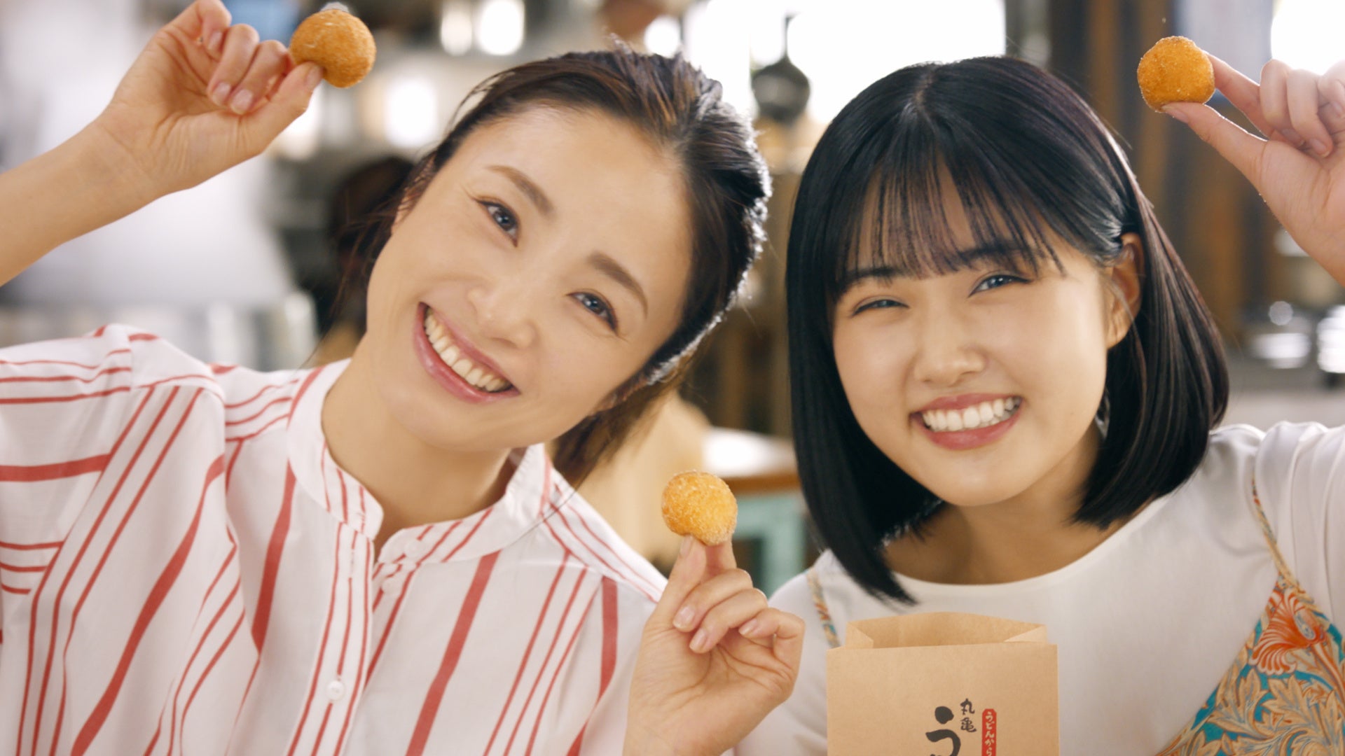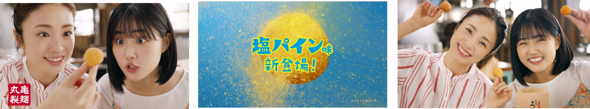新TVCM丸亀製麺「夏限定!塩パイン味新登場!丸亀うどーなつ」篇では、8月2日(金)から全国の丸亀製麺にて販売開始となる、うどん生まれの「丸亀うどーなつ」の新味「塩パイン味」を、俳優の上戸 彩さんと原 菜乃華さんが幸せそうに頬張る姿をお届けします。夏限定『丸亀うどーなつ 塩パイン味』の甘酸っぱい味わいに感動するお二人の表情にご注目ください。
