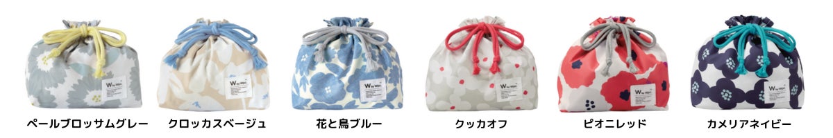 ランチボックスやカトラリーと同様のテキスタイルで展開しており、お気に入りのデザインで揃えてお使いいただけるランチ巾着。