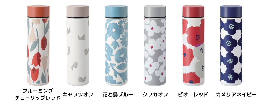 中には、ティーバッグや氷の飛び出しを防止する取り外し可能なメッシュフィルター付き。デザインは元気を与えてくれるような明るい花柄から、さりげない猫柄まで計6種展開。春のお出かけにバッグに忍ばせておけば、ウキウキ気分を高めてくれること間違いなし。