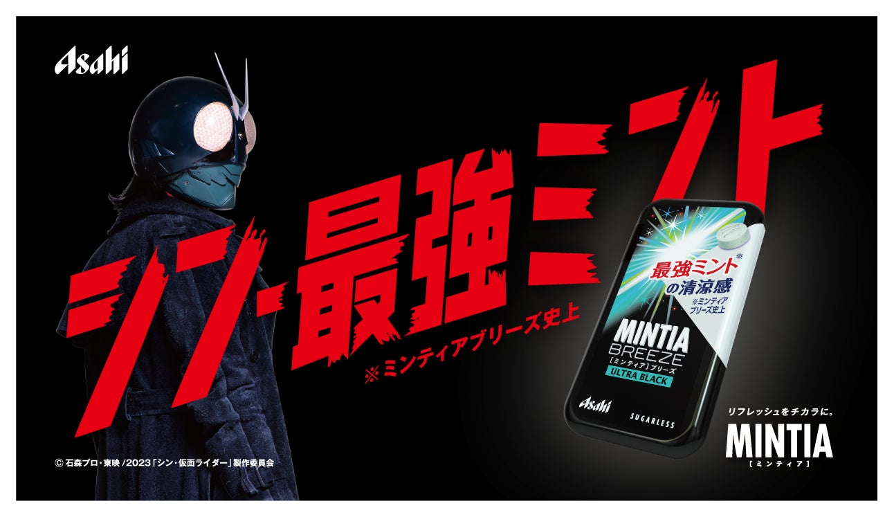 アサヒグループ食品株式会社(本社 東京、社長 川原浩)は、「ミンティアブリーズ」史上最強ミントの清涼感が楽しめる『ミンティアブリーズ ウルトラブラック』を4月3日から発売します。今回、3月17日公開の映画「シン・仮面ライダー」とのタイアップによるデジタル広告販促を展開し、新商品の認知拡大とトライアル喚起を図ります。さらに、『ミンティアブリーズ リフレッシュブルー』『ミンティアブリーズ クリスタルシルバー』『ミンティアブリーズ シャイニーピンク』の3品を4月3日からリニューアル発売します。