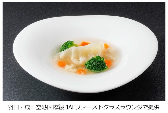 このスープは、JAL国際線パリ発ファースト・ビジネスクラスの機内食を監修している、フランス料理のシェフ・手島 竜司氏(※2)が「ビクトリープロジェクト®」の一環として味の素㈱と開発したもので、TEAM JAPANのための「G-Road Station」(※3)で提供されるメニューをラウンジ向けにアレンジしています。