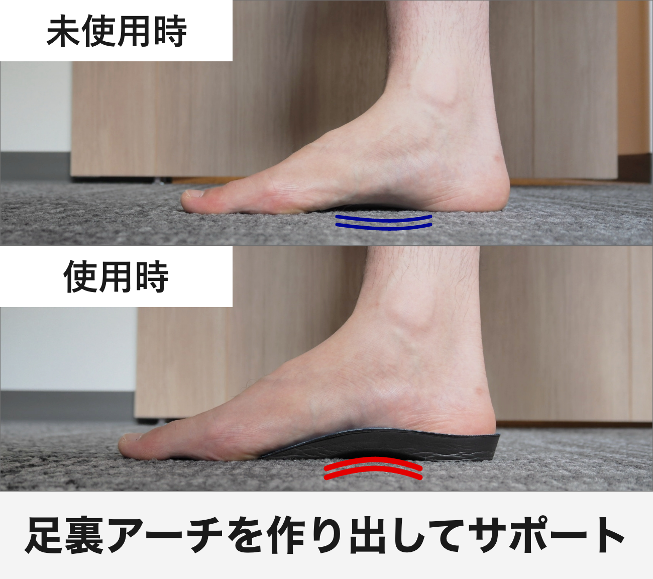 歩行時の足にかかる負担をカバーするには、足裏の隙間にあるアーチ部分を埋めることが最適。