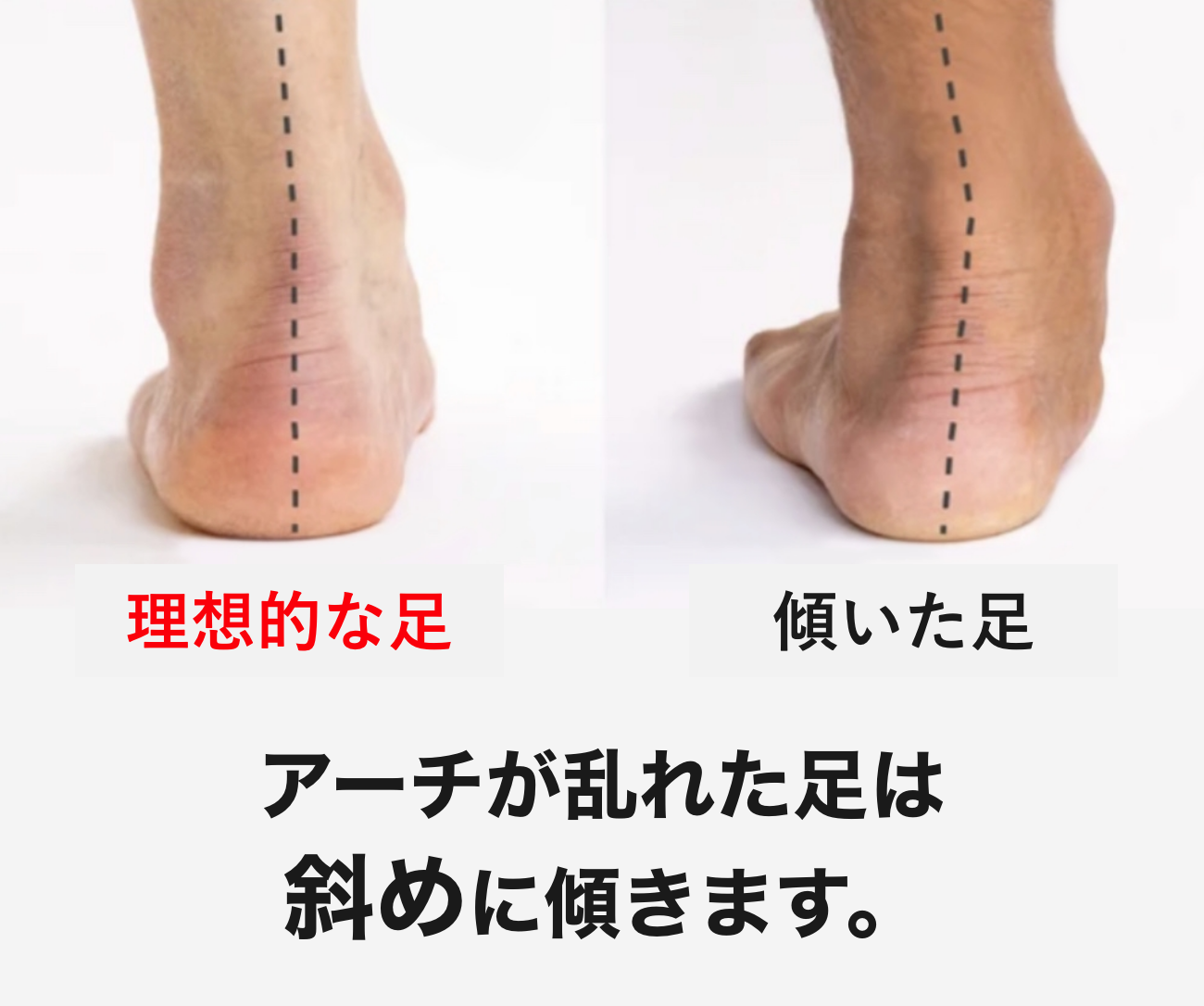 自分の足に合わない靴を履いたり間違った歩き方を繰り返すことにより、足のアーチが斜めに傾き、姿勢も悪くなっていきます。