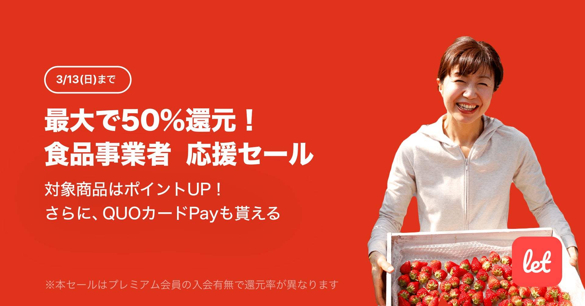 食品ロス/在庫ロス削減のマーケット「Let(レット)」、3/11(金)より「最大で50%還元!食品事業者 応援セール」を開催!