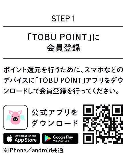 ご利用金額100円(税抜)ごとにTOBU POINTを付与いたします。