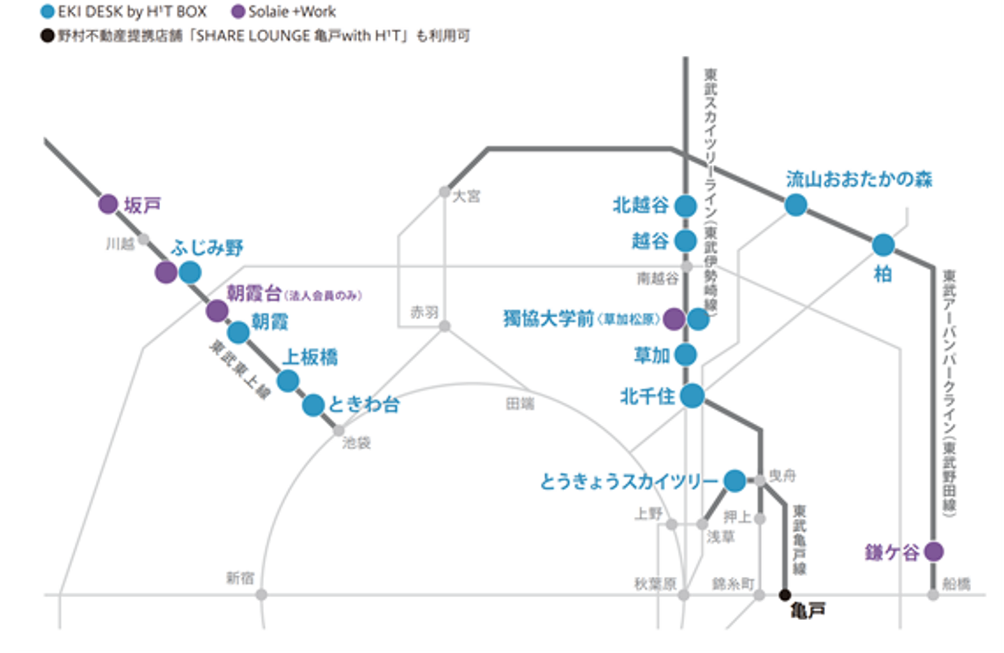※野村不動産提携店舗「SHARE LOUNGE亀戸withH¹T」も利用可