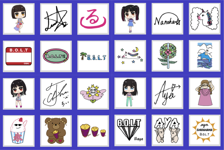 本コラボレーションの実施に伴い、B.O.L.Tのメンバー4名(内藤るな、高井千帆、青山菜花、白浜あや)にオリジナルデザインのスタンプを描き下ろしていただきました。