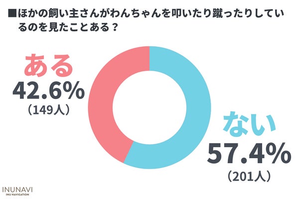 ほかの飼い主さんがわんちゃんを叩いたり蹴ったりしているのを見たことが「ある」と回答した飼い主さんは42.6%でした。