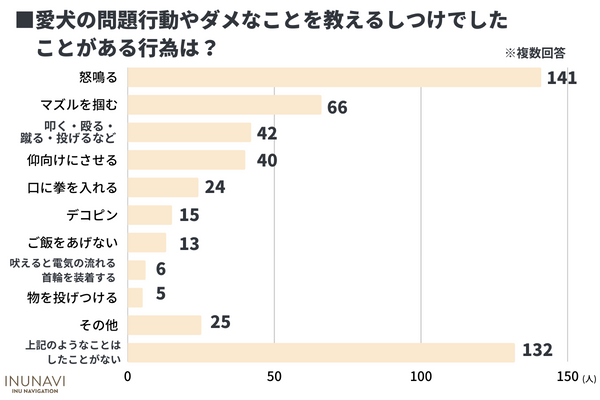 現在、これらの行為はすべてしつけではなく、してはいけないこととして多くのペットサイトやしつけ本などで注意喚起していますが、膨大な数の情報が錯綜しているため、なかなか目に触れることがないことが背景にあると考えられます。