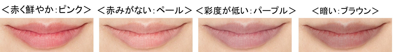 そこで今回、唇の色をより理解するために、21~79歳の日本人女性85人の唇の色を対象に色分類を行ないました。この検討により、もともとの唇の色が、それぞれ「赤く鮮やか」「赤みがない」「彩度が低い」「暗い」という特徴を有する4つのグループに分けられることを確認。各グループをそれぞれピンク、ペール、パープル、ブラウンと名付けました。