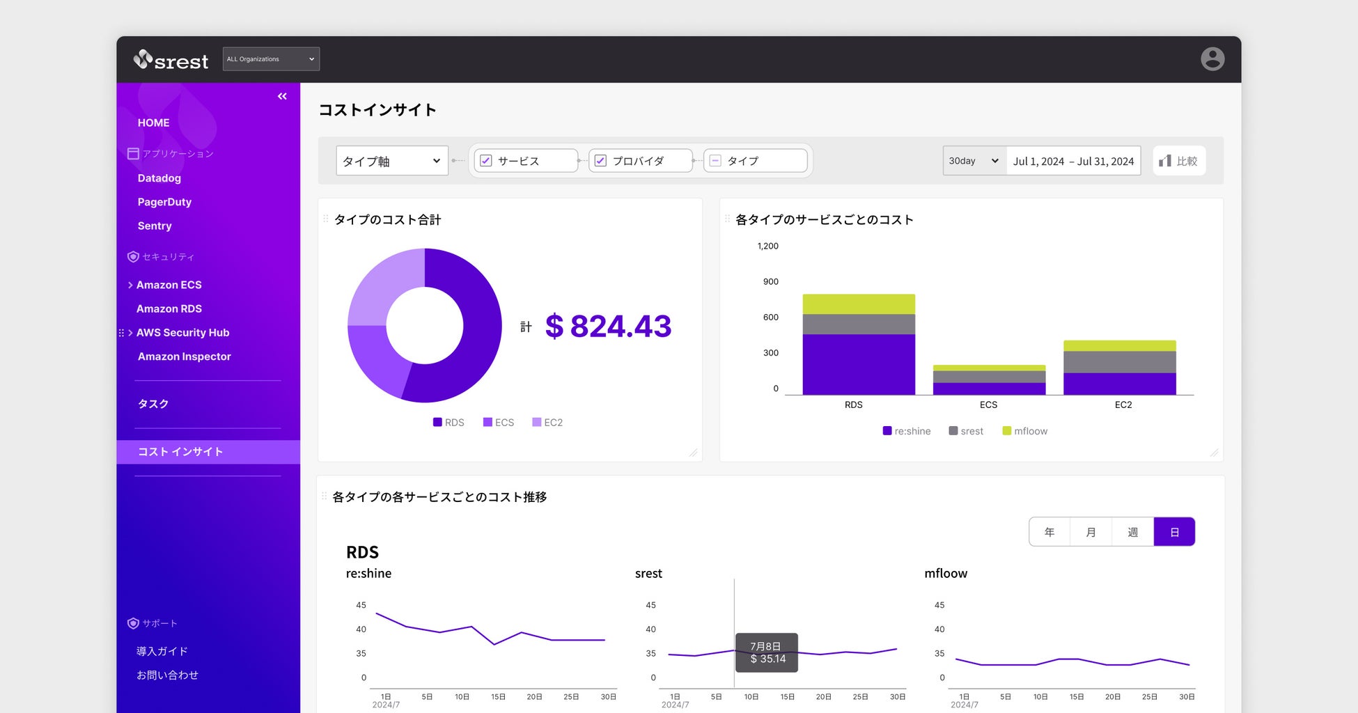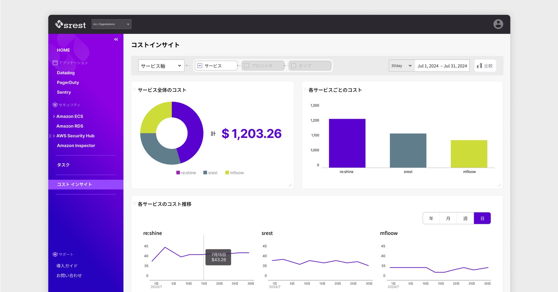 メタップスホールディングス(渋谷区、代表取締役社長 山﨑祐一郎)が提供するITインフラの一元監視サービス「srest(スレスト)」は、2024年8月8日(木)から「コストインサイト」機能を提供開始します。AWS(Amazon Web Services)サービスのコストをプロダクト(アカウント)横断で可視化。為替変動によりクラウドコストの増加リスクが高まる中、リアルタイムに費用の推移を把握することでコスト上昇を早期に検知し、クラウドコストを最適化するFinOpsに貢献します。