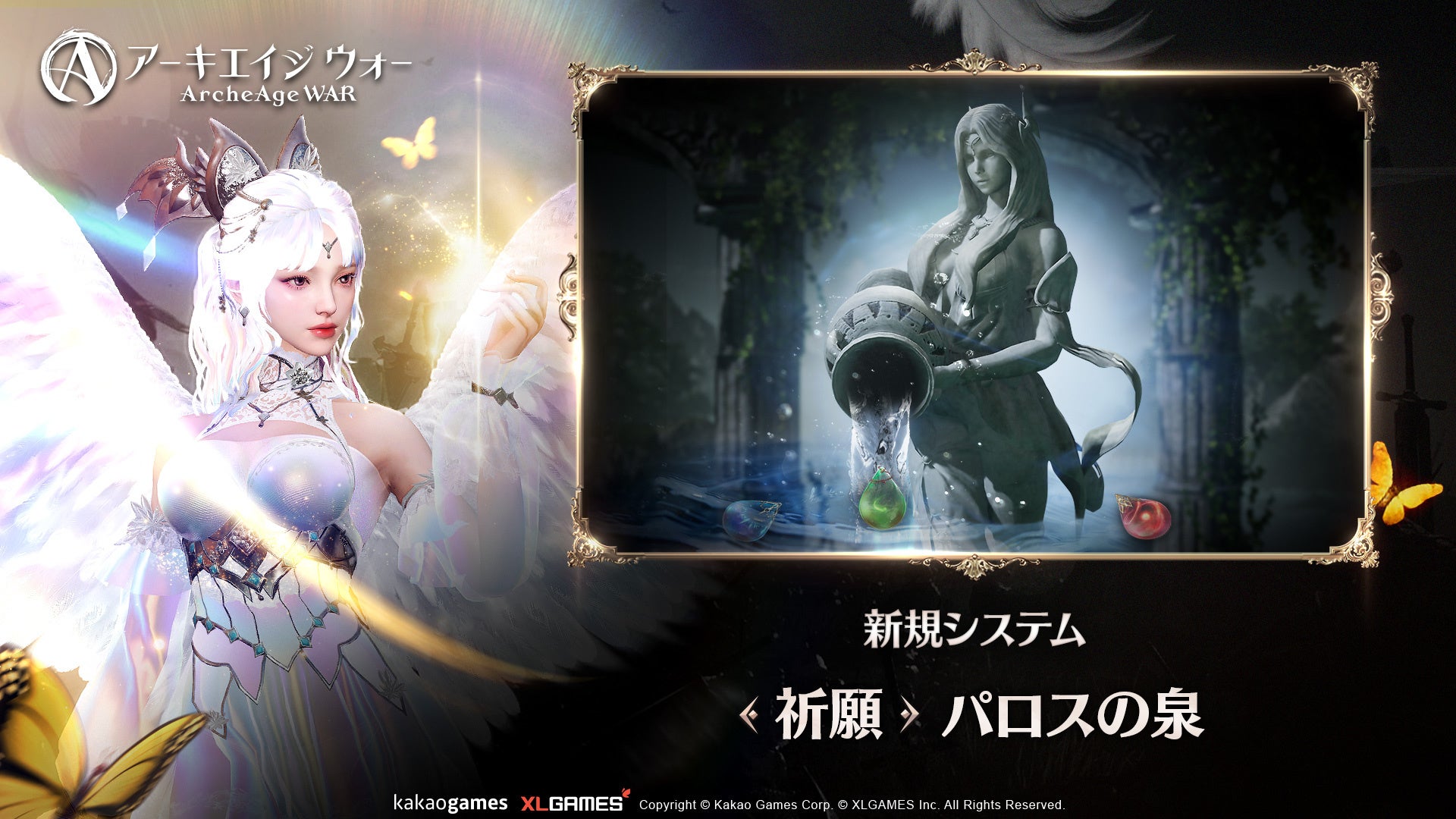 様々な装備アイテムが獲得できる「パロスの泉」システムが新たに追加される。「パロスの泉」では、取引可能な非帰属装備/技術書アイテムから「雫」を抽出し、祈願することで様々な等級や部位、強化段階の装備アイテムを獲得することができる。