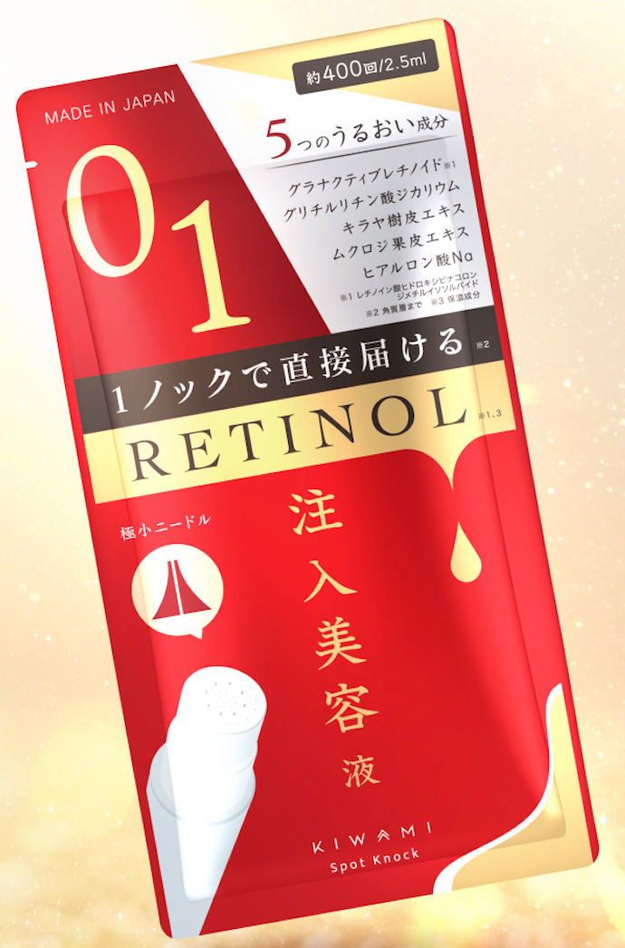 マイクロニードル注射器を採用することで次世代型*レチノールを1ノックで直接届ける!KIMAMI <スポットノック>約400回/2.5mlが新登場しました。*自社比となります。