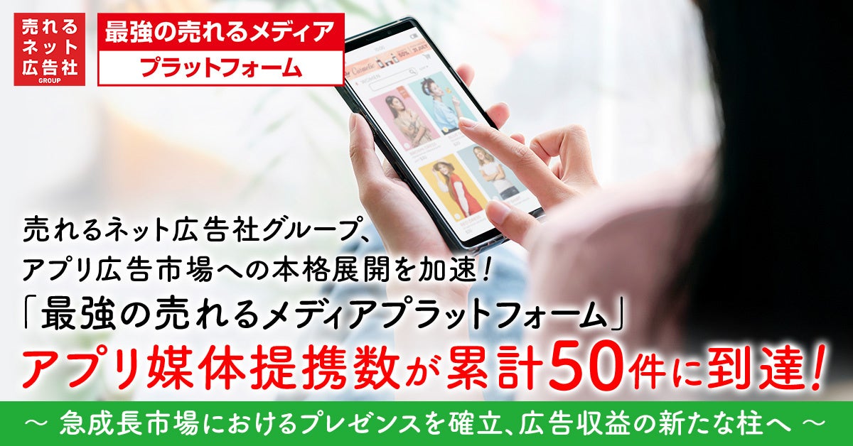 売れるネット広告社グループ、アプリ広告市場への本格展開を加速!「最強の売れるメディアプラットフォーム」アプリ媒体提携数が累計50件に到達!