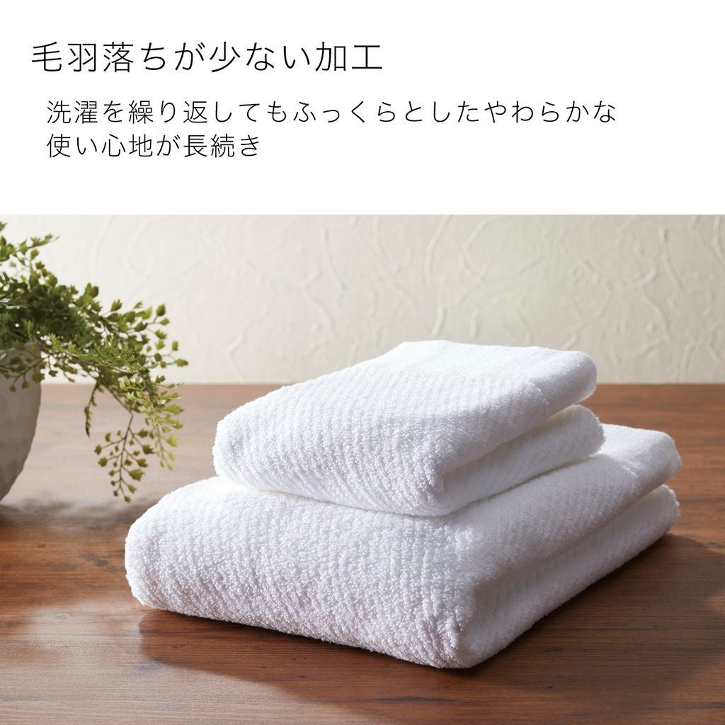 吸水力抜群な綿とマイクロファイバーのダブルパイル構造で、吸水性に優れたタオルです。部屋干し抗菌防臭加工も施されており、洗濯してもはやく乾くので部屋干しにもおすすめ。肌ざわりがやさしく、洗濯をくりかえしてもふっくらとした使い心地が長続きいたします。