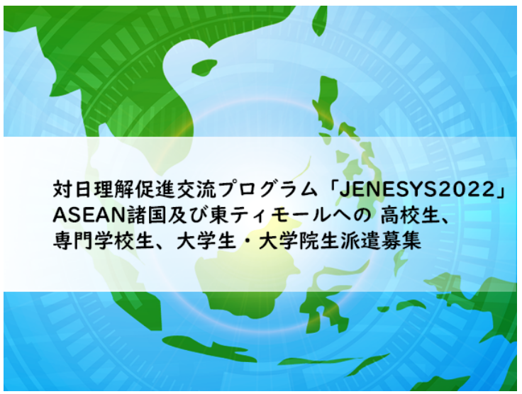 対日理解促進交流プログラム「JENESYS2022」ASEAN諸国及び東ティモールへの 高校生、専門学校生、大学生・大学院生派遣募集のご案内