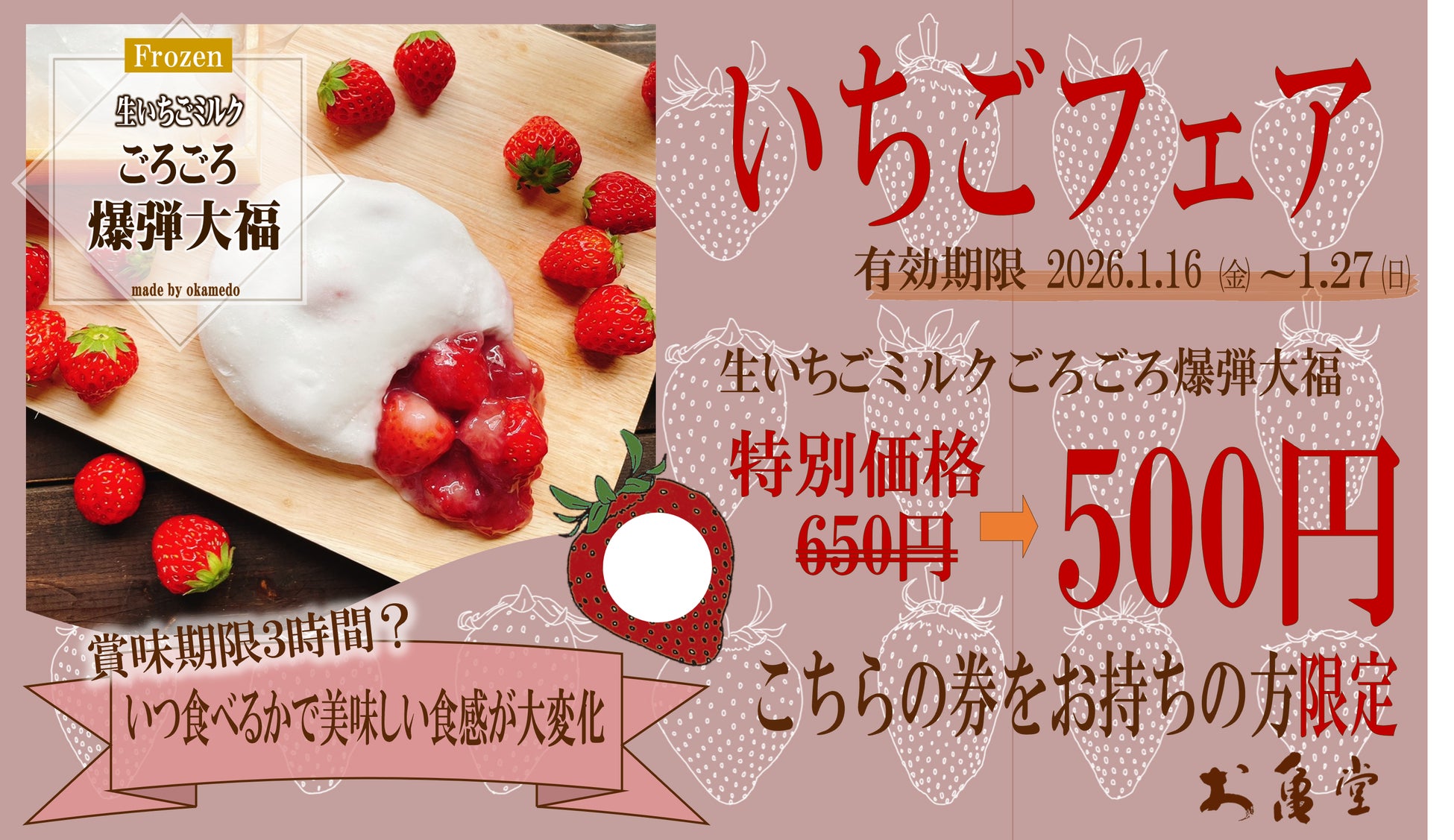 愛知県三河地域で70年以上にわたり和菓子文化を届け続けている老舗・株式会社お亀堂(本社:愛知県豊橋市、代表取締役:森貴比古)は、2026年1月16日(金)〜25日(日)の10日間、「いちごフェア」を開催いたします。